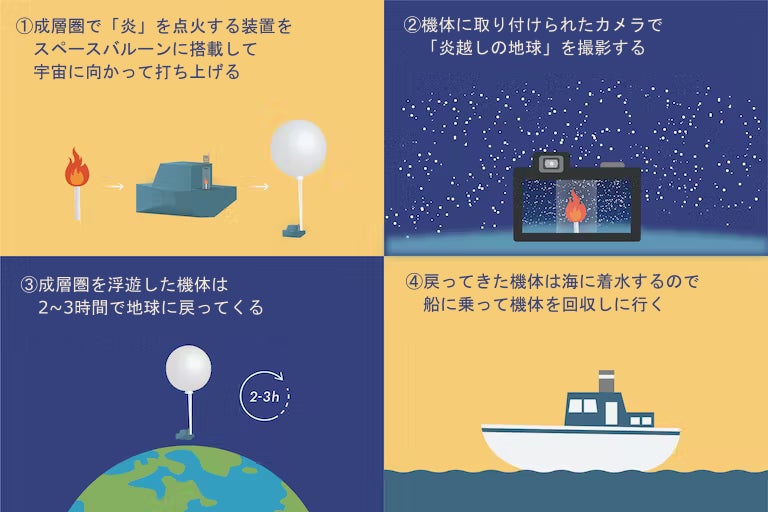 ・点火装置を搭載したスペースバルーンを成層圏に打ち上げ、宇宙と地球を背景に炎を点灯し、撮影するプロジェクト