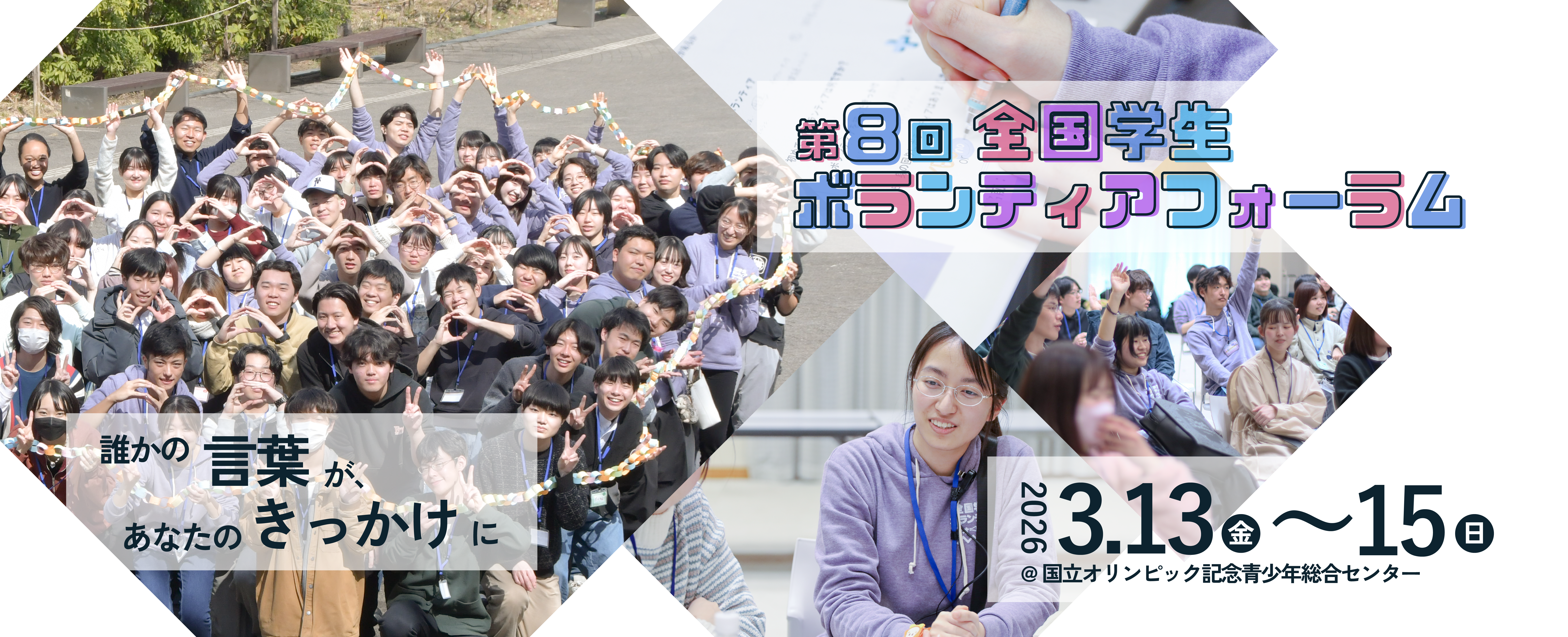 全国ボランティア活性化プロジェクト実行委員会(事務局:NPO法人おりがみ)は、2026年3月13日(金)〜15日(日)に 「第8回全国学生ボランティアフォーラム」 を、東京都渋谷区の国立オリンピック記念青少年総合センターにて開催します。